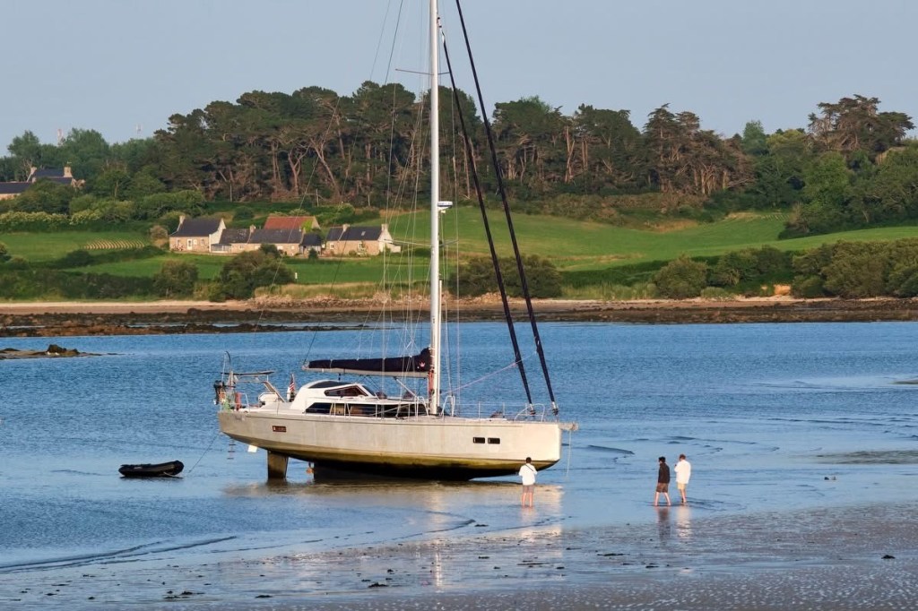 Unlike the human version of drying out, this one is entirely intentional. We use it to inspect and clean the hull, apply antifouling paint, fix a troublesome through-hull fitting, or just have a good look at what’s lurking below the waterline without the expense of a haul-out. French cruising yachts have embraced this technique for generations, partly because the ports of Brittany and Normandy have tides so dramatic they’d make your head spin — sometimes 35 feet or more.