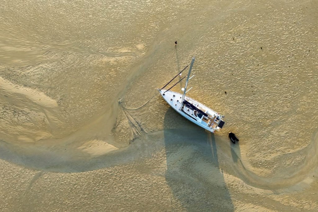 The key to a successful dry-out is a boat with a flat-bottomed or twin-keeled hull that can stand upright on its own (or with the help of legs). You pick a soft, flat bottom, time it with the tide, and let gravity do the work. A few hours later, the boat is back up and underway — refreshed, clean, and ready for the next passage.